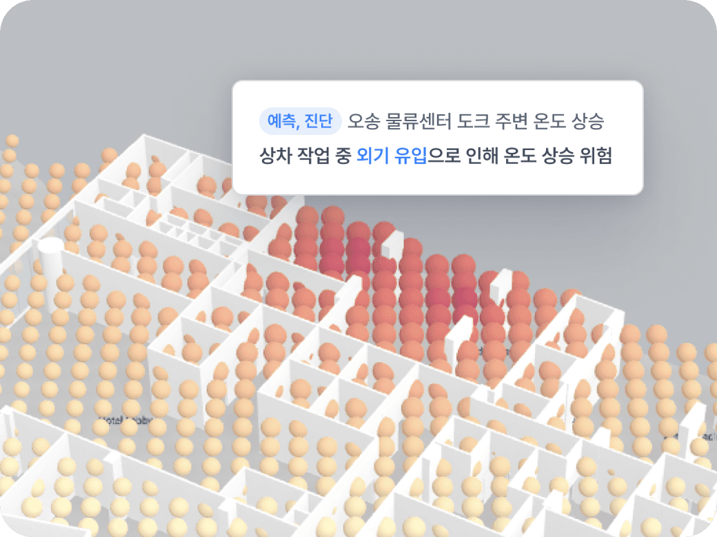 “3D 공간 모델링 실시간 창고 모니터링으로 구역별 환경을 빠르게 확인할 수 있습니다”